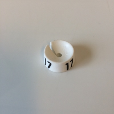 MB wisersizer wit/zwart 17 voor op kledinghanger, zakje met 25 stuks. Diameter 19,2mm hoogte 8,3mm - cijferhoogte 6,2mm. Geschikt voor hangers met diameter van 2 tot 3,5mm.