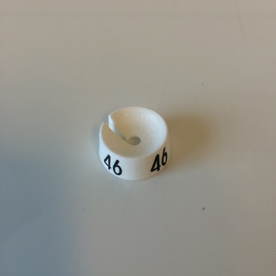 MB wisersizer wit/zwart 46 voor op kledinghanger, zakje met 25 stuks. Diameter 19,2mm hoogte 8,3mm - cijferhoogte 6,2mm. Geschikt voor hangers met diameter van 2 tot 3,5mm.