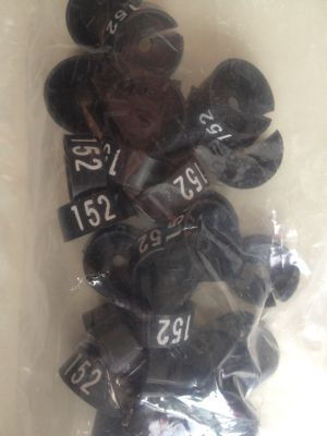 MB wisersizer zwart/wit 152 voor op kledinghanger, zakje met 25 stuks. Diameter 19,2mm hoogte 8,3mm - cijferhoogte 6,2mm. Geschikt voor hangers met diameter van 2 tot 3,5mm.