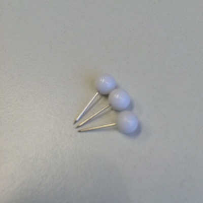 Speld met witte kunststof knop 6mm lengte 16mm, doosje 500 stuks.