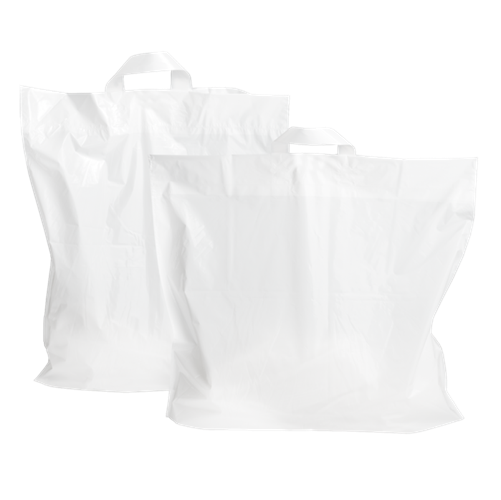 Lusdraagtassen DKT wit breedte 45cm x 51cm hoog + inslag 2x5 cm, dikte 55 micron LDPE plastic, doosinhoud 250 stuks. Lustas voorzien van versterkt handvat. Verpakt per : 250 stuk Breedte : 450 mm Hoogte : 510 mm Dikte : 55 my Zijvouw/bodem : (2x50mm) Kleur : wit Materiaal : LDPE Deze draagtassen moet u WEL aan uw klant door berekenen. Kunt u dus NIET gratis meegeven. Verbod op gratis verstrekking van deze kunststoffen draagtassen.