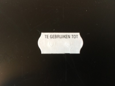 Etiket 26x12 golfrand wit permanent bedrukt >> Te gebruiken tot << 2-sl 54.000 (=36 rollen a 1500 etiketten) Gommering / kleefkracht 2. Voorzien van combistans. FSC®-C095147. Geschikt voor o.a. Samark, Blitz, Contact, Evo, Meto, Jolly, Open, Derby, Uno, Sato Kendo, Sato Samark, Tovel, Print, Avery, Swing, Sky, Jazz, Motex, Prix, Towa.