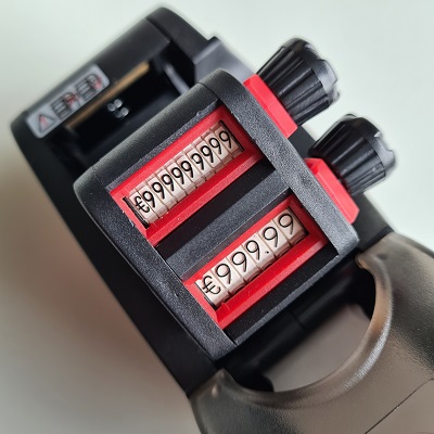 2-Regelige prijstang. Afdruk op de bovenste regel maximaal 10 cijfers en op de onderste regel een prijs met €999,99. of een 6 cijferig nummer. Benodigde etiketten beginnen met artikelnr. 27183...