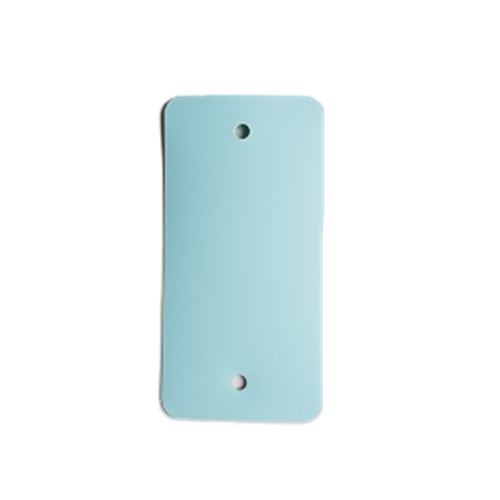 Kunststof PEM labels 54x108 mm pastelblauw dikte 0,20mm 2 gaten 5mm, afgeronde hoeken, doosinhoud 1000 stuks.