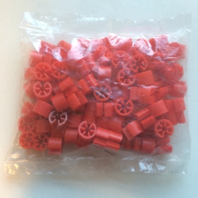 Minimarker onbedrukt normaal rood, verpakt in zakjes met 100 stuks. Diameter 13mm, hoogte 10mm. Geschikt voor kledinghangers met diameter van 2,5 tot 3,5mm.