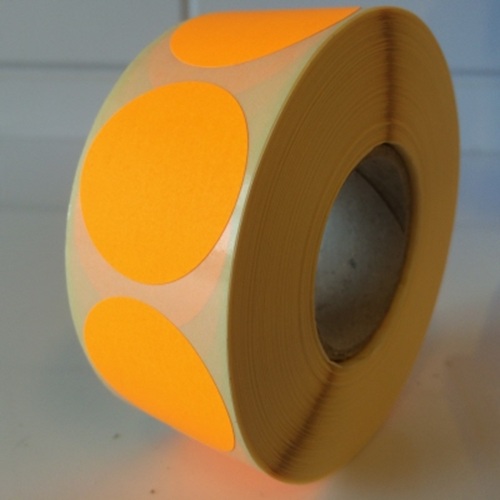 Etiket 50 mm rond fluor oranje kleefkracht permanent, aantal etiketten 1000 stuks op rol. Kern diameter 40mm. FSC-C106281. - Afmeting: 50mm - Vorm: rond - Kleur: fluor oranje - Materiaal: zelfklevend papier - Kleefkracht: permanent (sterk klevend) - Randafwerking: rond etiket - Aantal per rol: 1.000 etiketten - Prijs per: 1 rol Wat zijn de voordelen? Deze etiketten zijn ideaal voor het labelen van producten of verpakkingen, als sluitzegel waar het etiket gedurende lange tijd moet blijven zitten zonder los te komen.