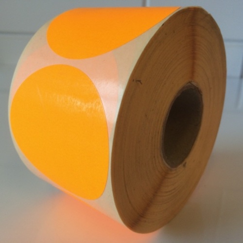 Etiket 75 mm rond fluor oranje kleefkracht permanent, aantal etiketten 500 stuks op rol. Rolbreedte 78mm kerndiameter 40mm roldiameter 116mm. FSC-C106281. - Afmeting: 75mm - Vorm: rond - Kleur: fluor oranje - Materiaal: zelfklevend papier - Kleefkracht: permanent (sterk klevend) - Randafwerking: rond etiket - Aantal per rol: 500 etiketten - Prijs per: 1 rol Wat zijn de voordelen? Deze etiketten zijn ideaal voor het labelen van producten of verpakkingen, als sluitzegel waar het etiket gedurende lange tijd moet blijven zitten zonder los te komen.