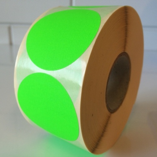 Etiket 75 mm rond fluor groen kleefkracht permanent, aantal etiketten 500 stuks op rol. Rolbreedte 78mm kerndiameter 40mm roldiameter 116mm. FSC-C106281. - Afmeting: 75mm - Vorm: rond - Kleur: fluor groen - Materiaal: zelfklevend papier - Kleefkracht: permanent (sterk klevend) - Randafwerking: rond etiket - Aantal per rol: 500 etiketten - Prijs per: 1 rol Wat zijn de voordelen? Deze etiketten zijn ideaal voor het labelen van producten of verpakkingen, als sluitzegel waar het etiket gedurende lange tijd moet blijven zitten zonder los te komen.